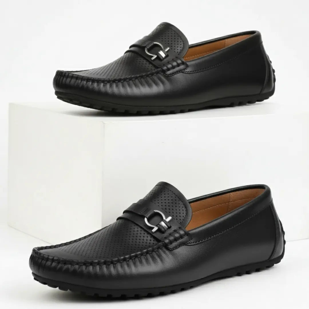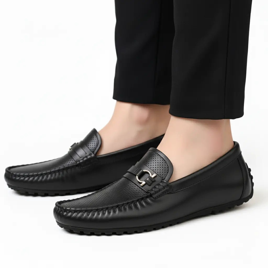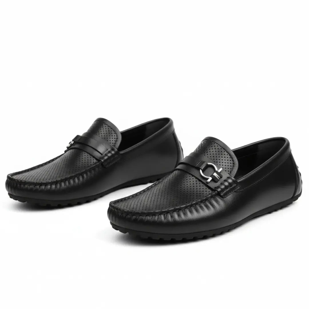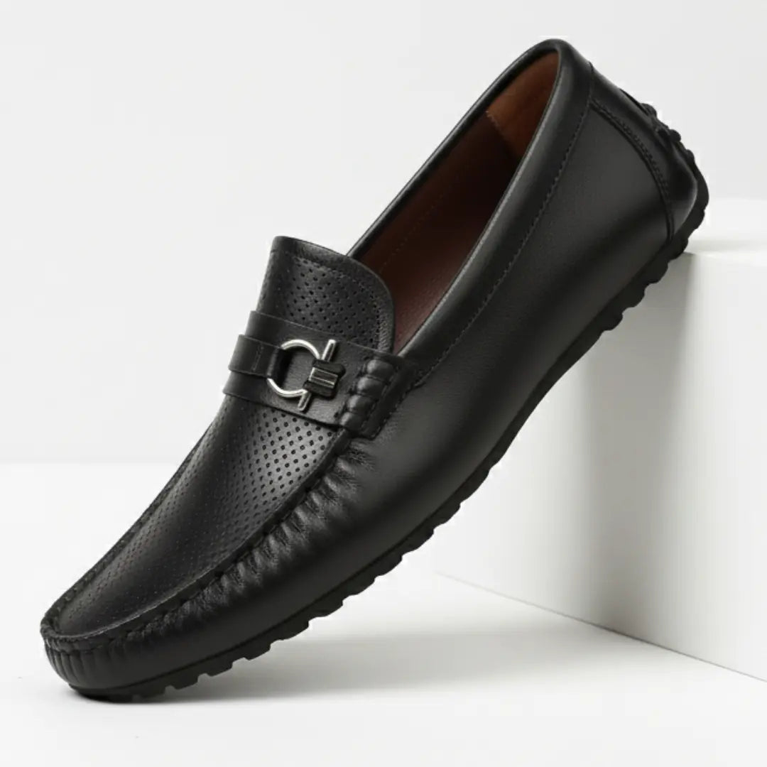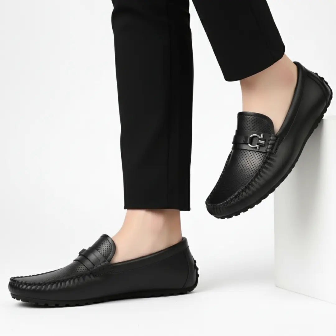 Mocassin Cuir Noir de Luxe Tres Confortable