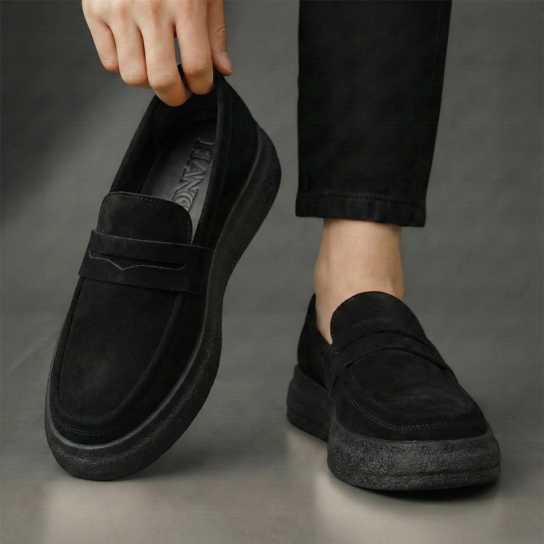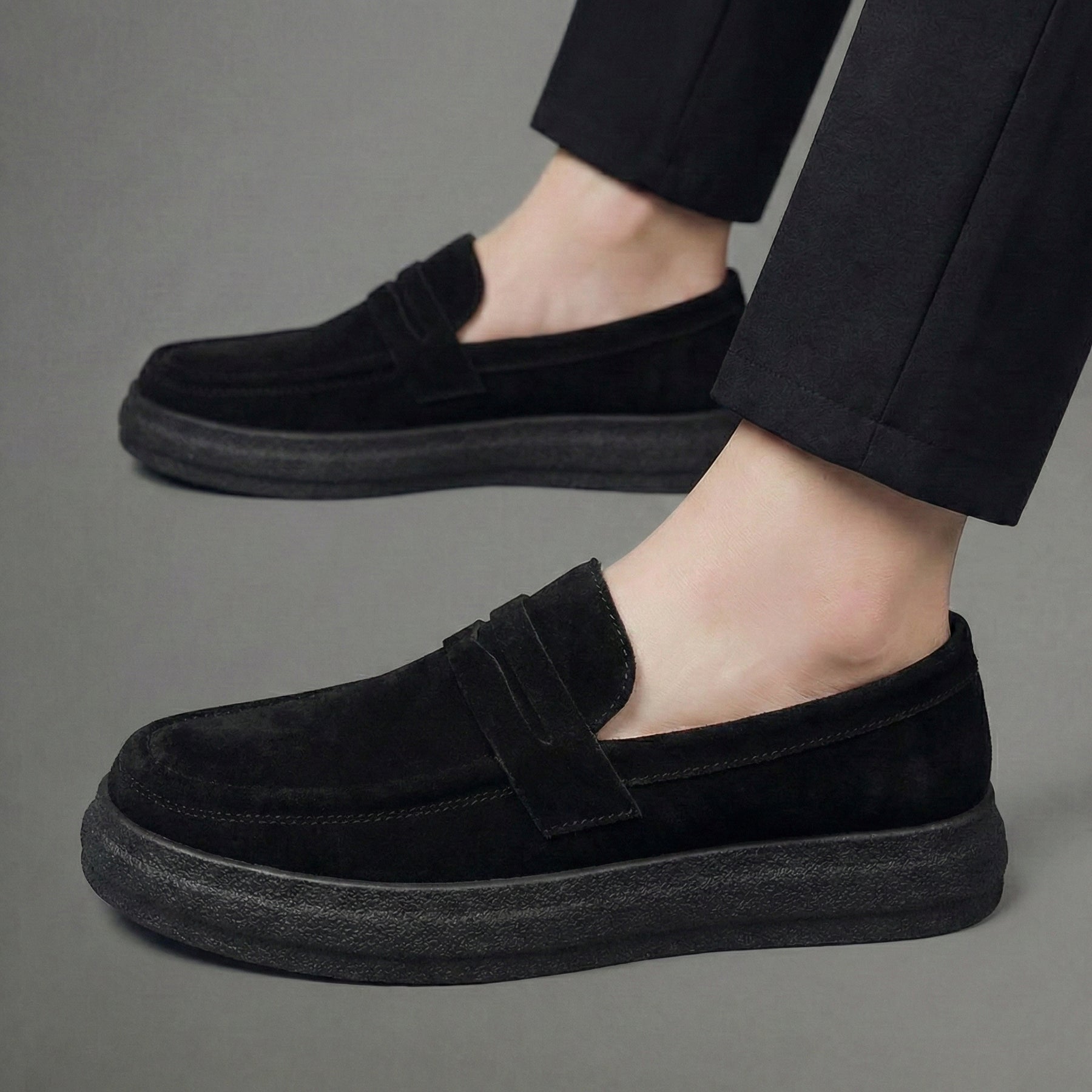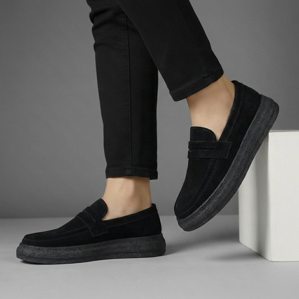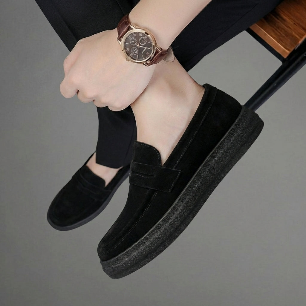 Mocassins Noir Daim de Luxe Tres Confortable