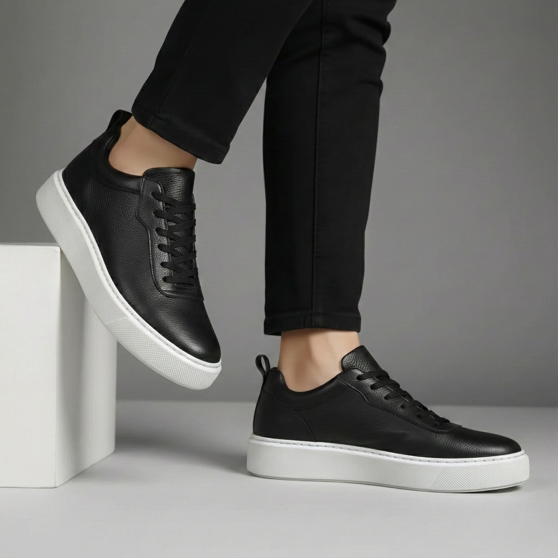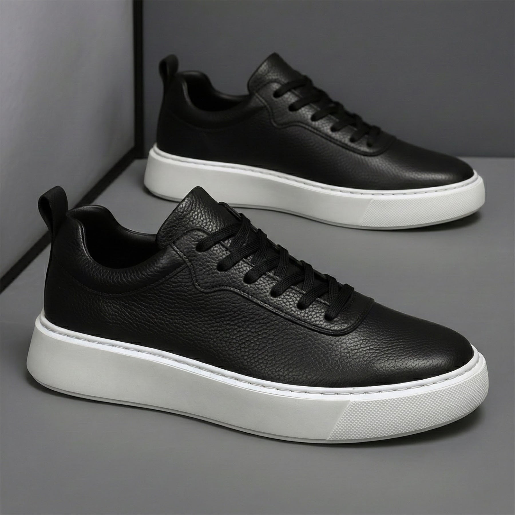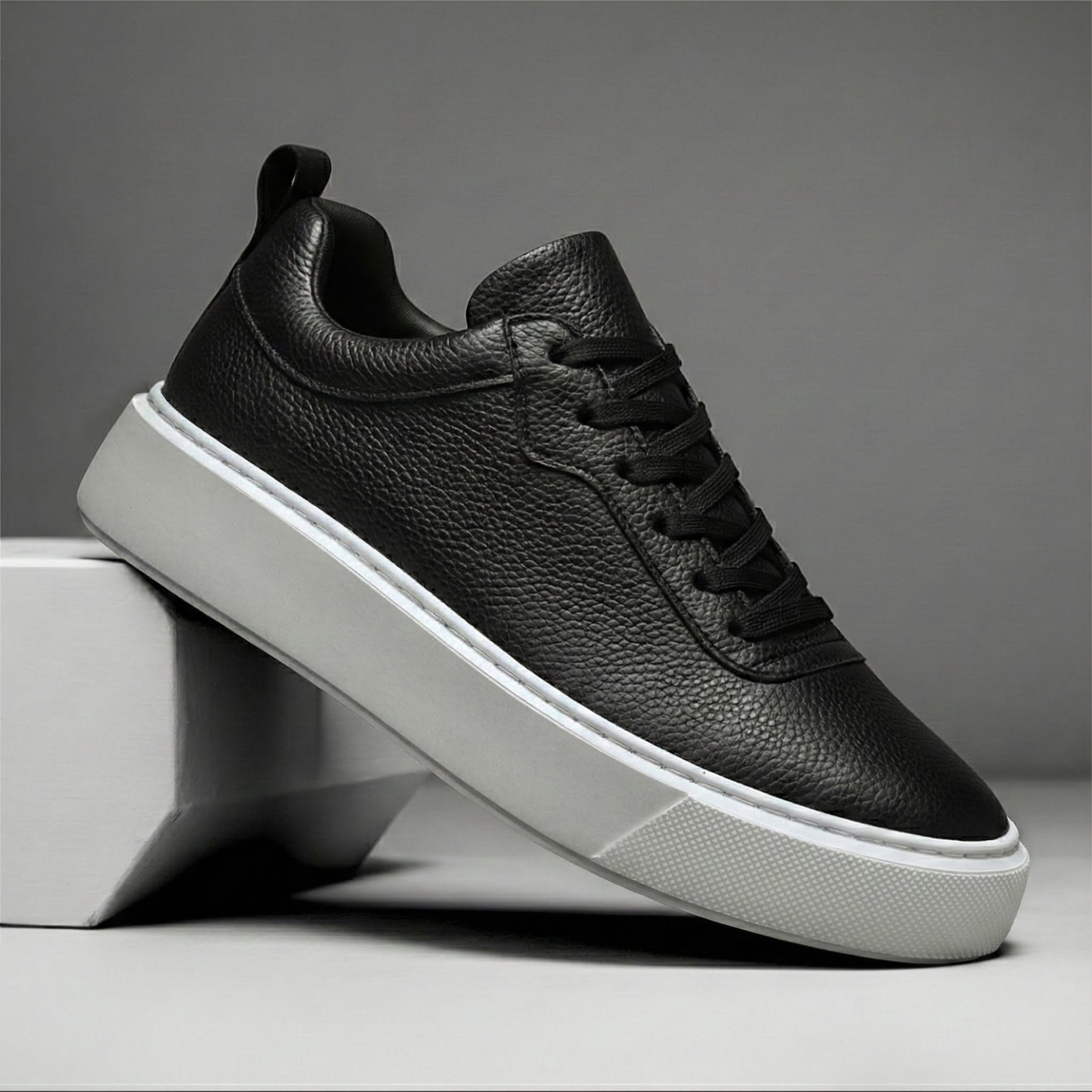 Sneakers Noir en Cuir Grainé - Tres Confortable