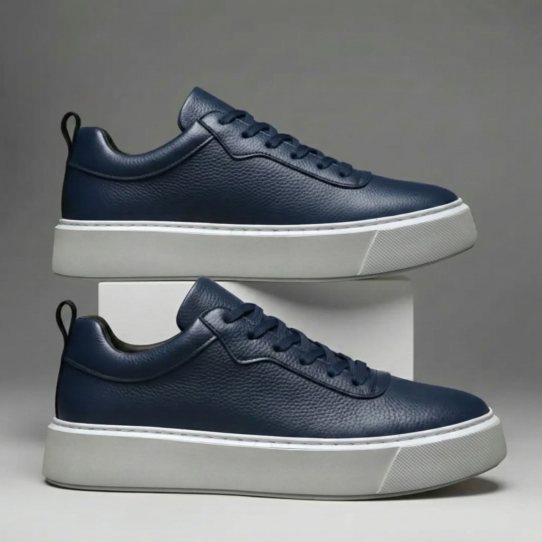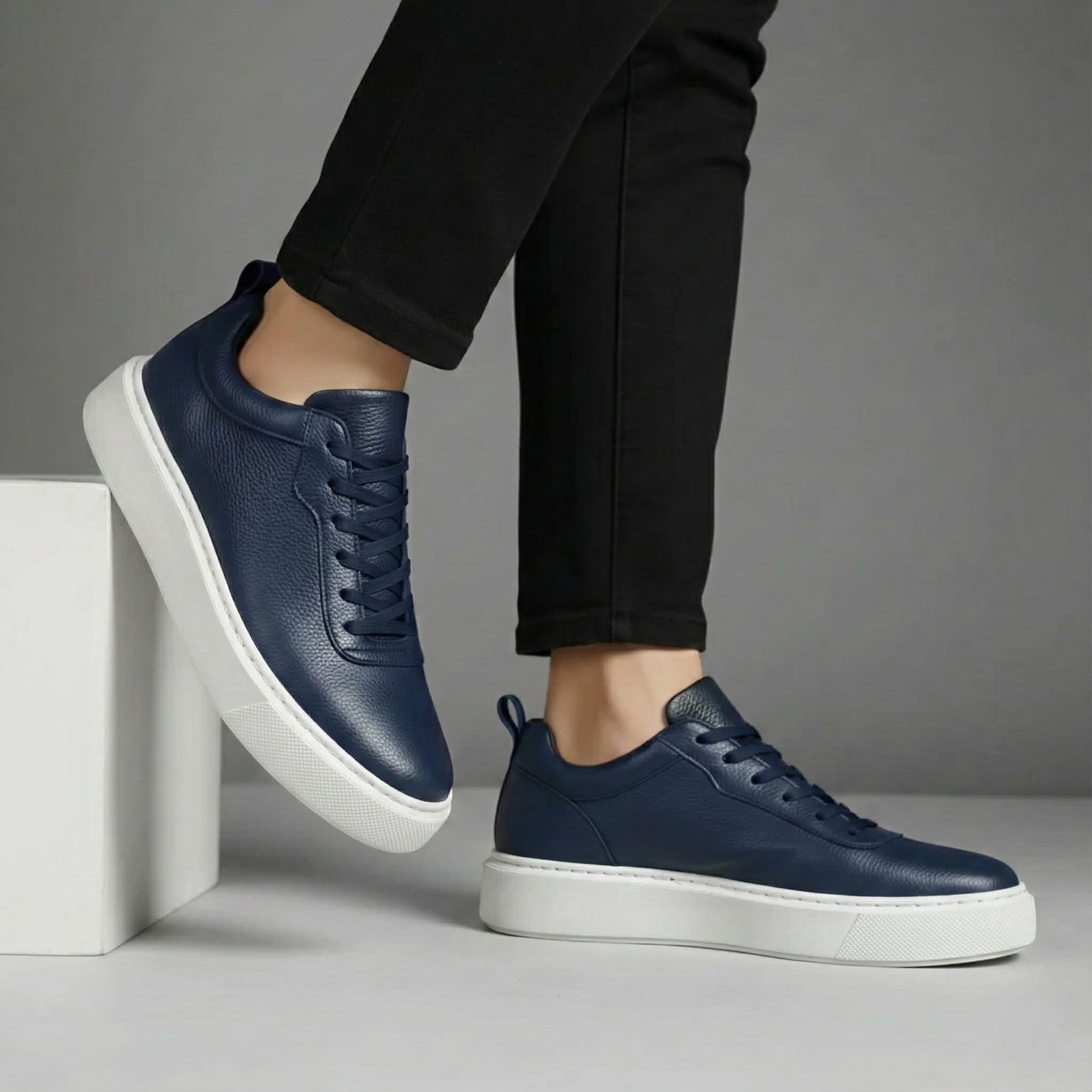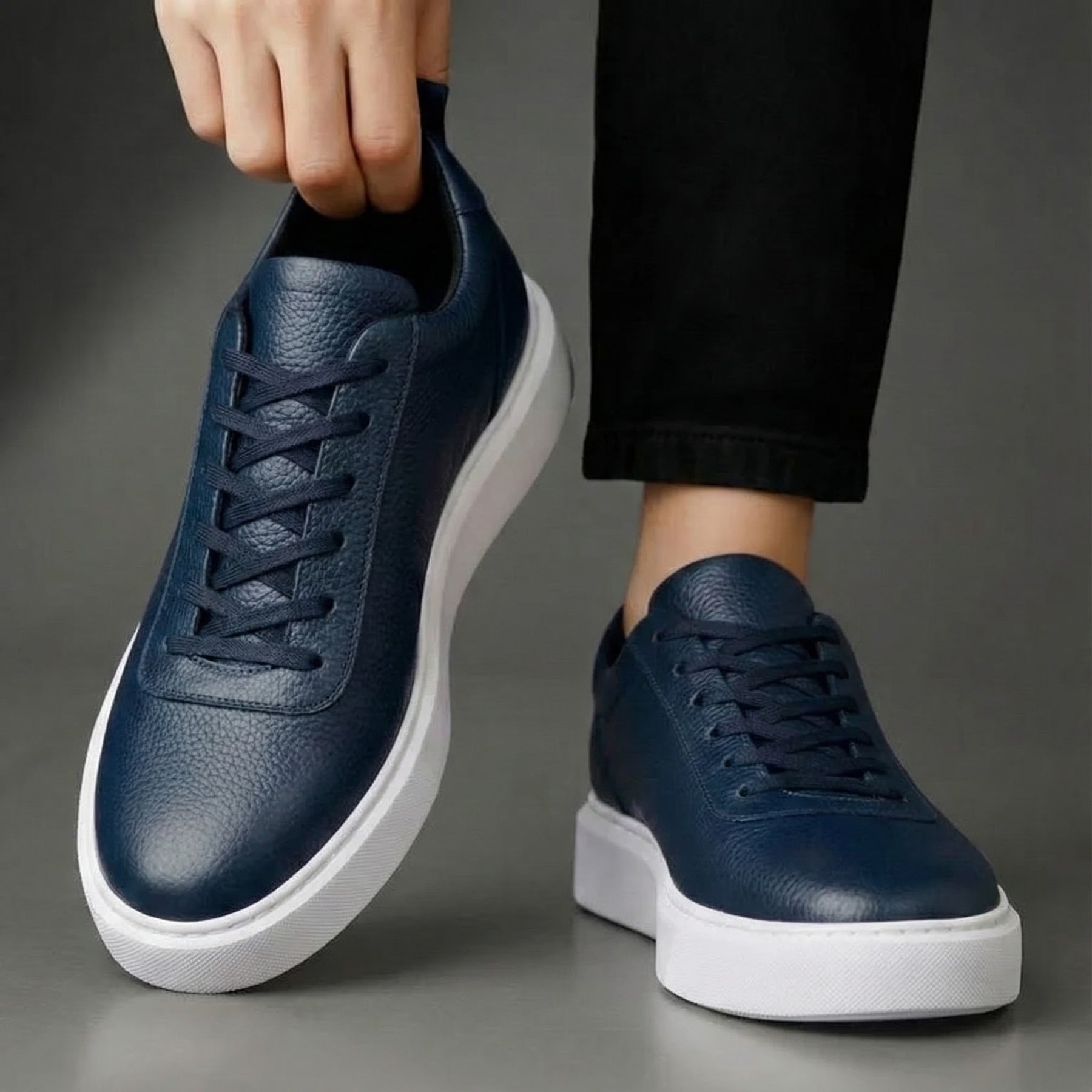 Sneakers BleuMarine en Cuir Grainé - Tres Confortable